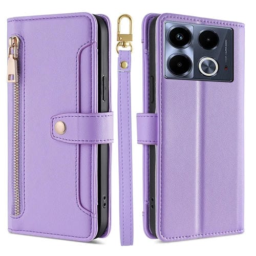 Funda de Cuero para Infinix Note 40 4G con Billetera, Cremallera y Textura de Oveja (Púrpura)