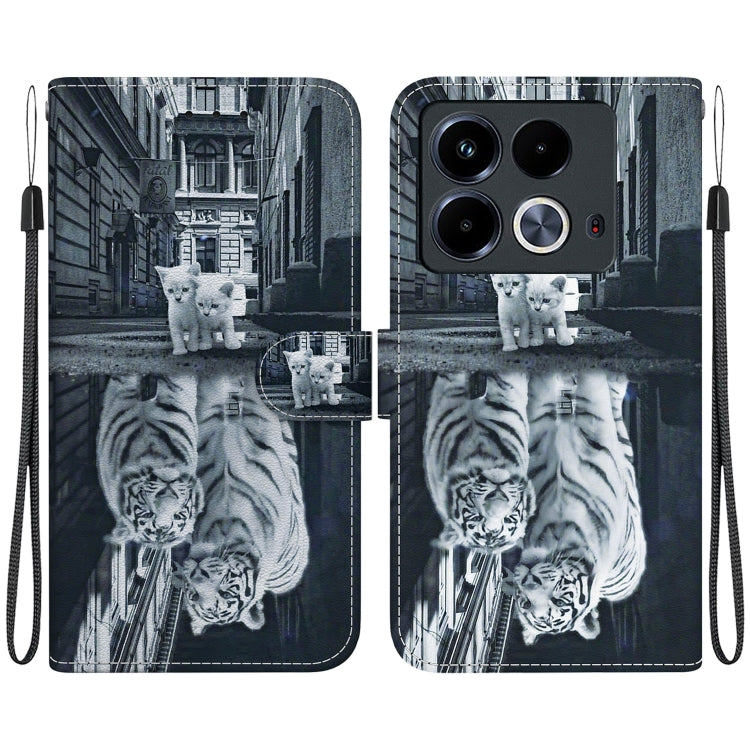 Funda de Cuero para Infinix Note 40 4G con Dibujo Coloreado y Textura de Cristal (Reflejo de Tigre Gato)