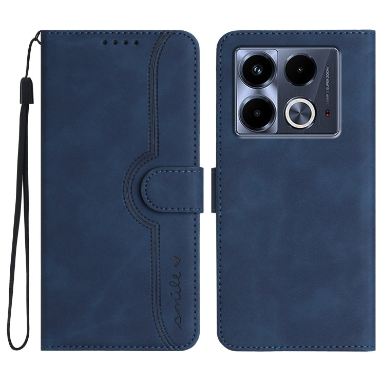 Funda de Cuero para Infinix Note 40 4G con Sensación de Piel y Patrón de Corazón (Azul Real)