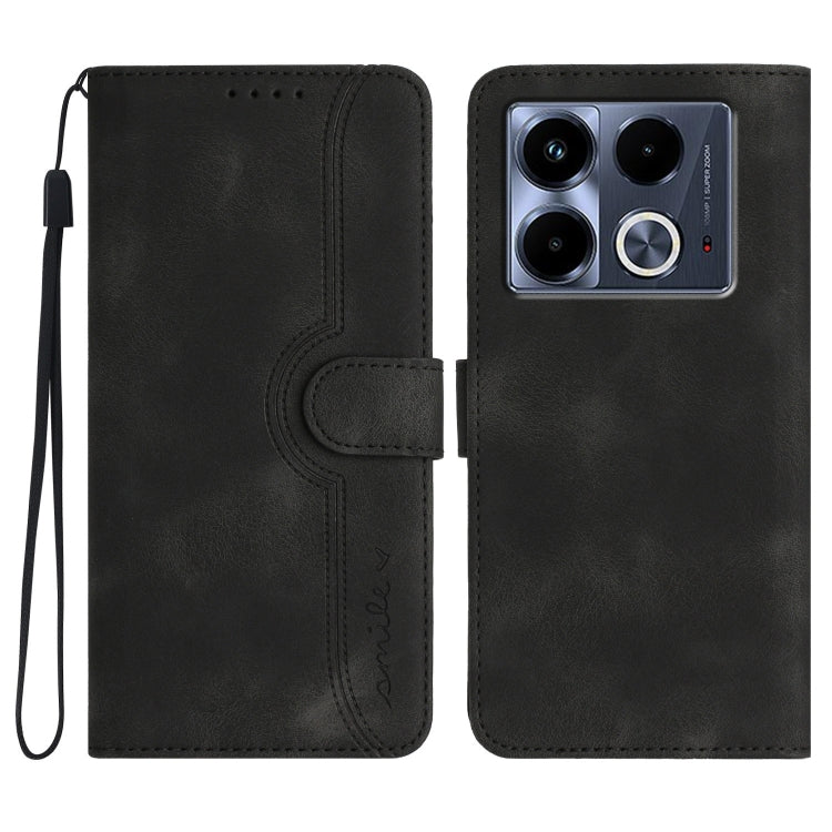Funda de Cuero para Infinix Note 40 4G con Sensación de Piel y Patrón de Corazón (Negro)