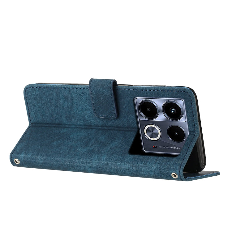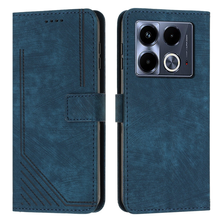 Funda de Cuero para Infinix Note 40 5G con Patrón de Rayas y Cordón (Azul)