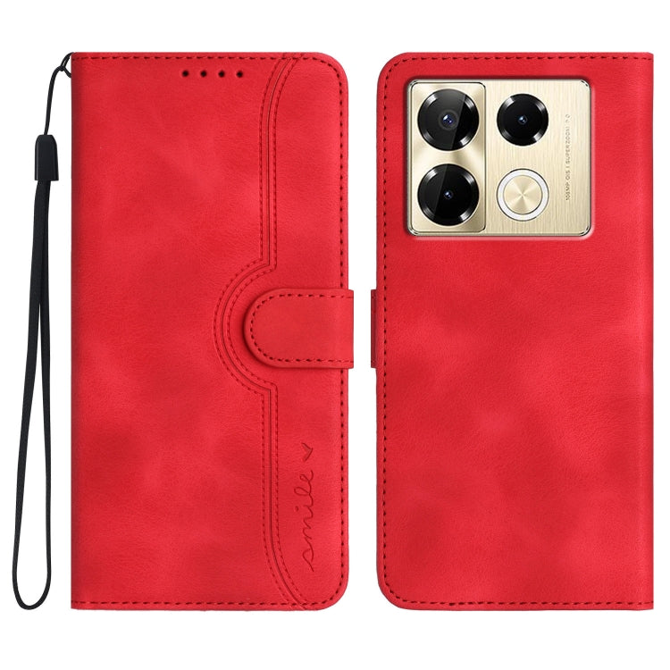 Funda de Cuero para Infinix Note 40 Pro 4G/5G con Sensación de Piel y Patrón de Corazón (Rojo)