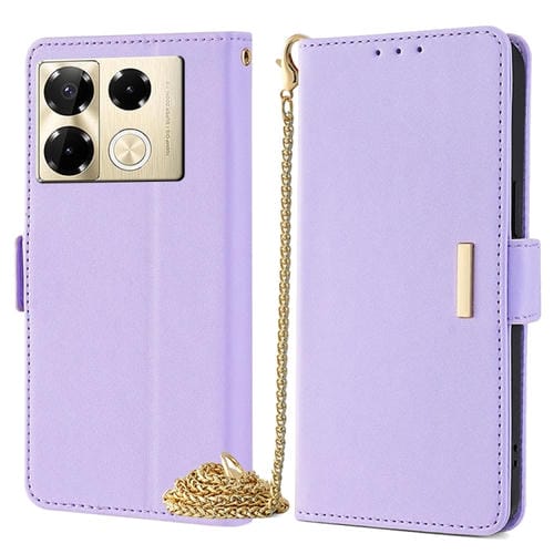 Funda de Cuero para Infinix Note 40 Pro 4G con Cadena Cruzada (Púrpura)
