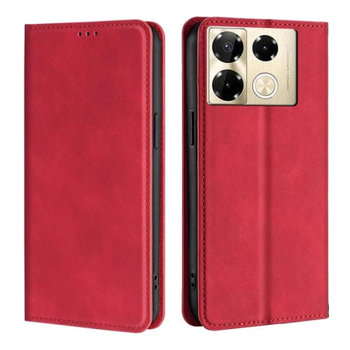 Funda de Cuero Magnética Skin Feel para Infinix Note 40 Pro 4G (Rojo)