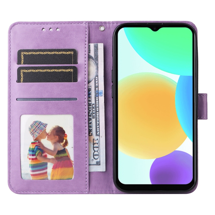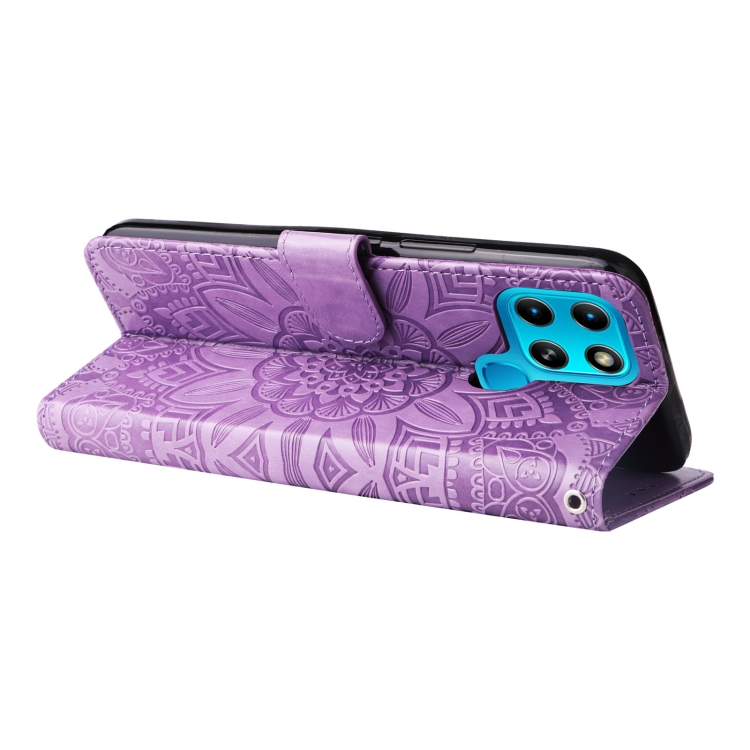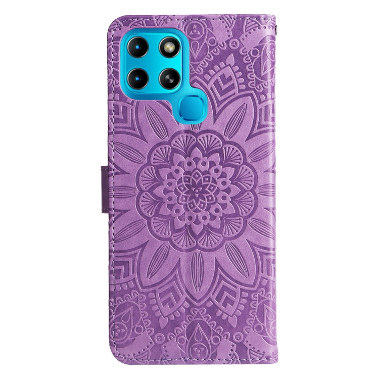 Estuche para Teléfono Infinix Smart 6 Cuero con Estampado de Girasol en Relieve (Púrpura)