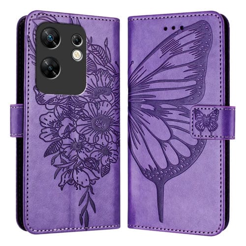 Funda de Cuero para Infinix Zero 30 4G con Mariposa en Relieve (Púrpura Claro)