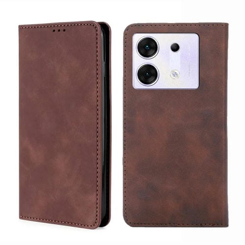 Funda de Cuero Magnética para Infinix Zero 30 5G Skin Feel (Marrón Oscuro)