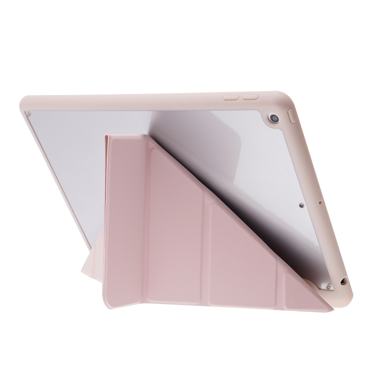 Funda para iPad 10.2 (2021/2020/2019) Cuero PU Tapa Acrílico Transparente Soporte Múltiples Pliegues Ranura Bolígrafo (Oro Rosa)