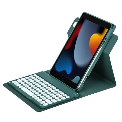 Funda de Cuero para iPad 10.2 2021 y Air 2019 con Botón Redondo Teclado Bluetooth Giratorio 360 Grados (Verde Oscuro)