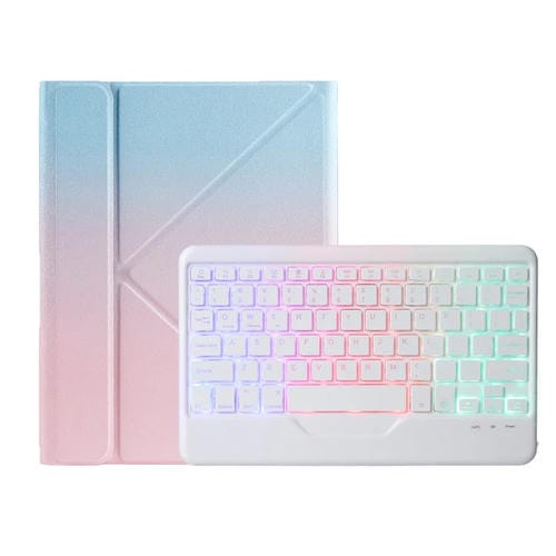 Funda de Cuero con Teclado Bluetooth para iPad B10S Retroiluminación Triangular (Azul y Rosa)
