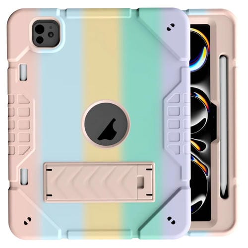 Funda híbrida de silicona para iPad Pro 11 (2024) con soporte de armadura (Dorado Degradado)