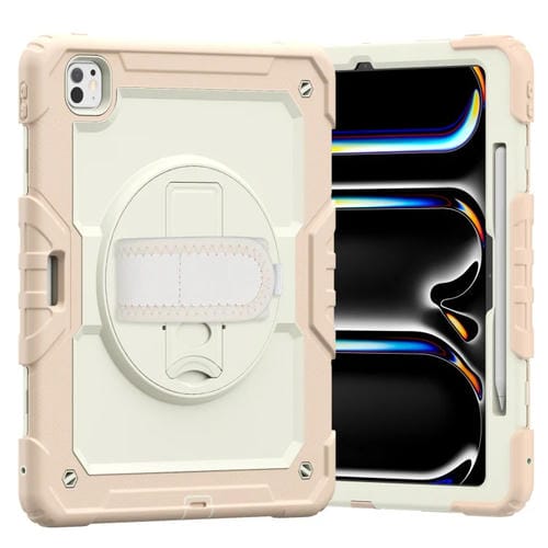 Funda híbrida para iPad Pro 13 2024 silicona con correa para el hombro (Beige + Oro Rosa)