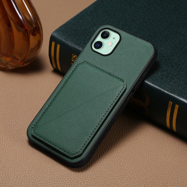 Funda para Teléfono iPhone 11 D04 con Ranura para Tarjeta Dual Textura de Becerro (Verde)