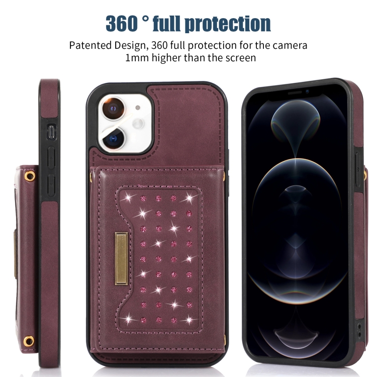 Estuche de Teléfono para iPhone 11 de Cuero Rfid Tres Pliegues con Cordón (Rojo)