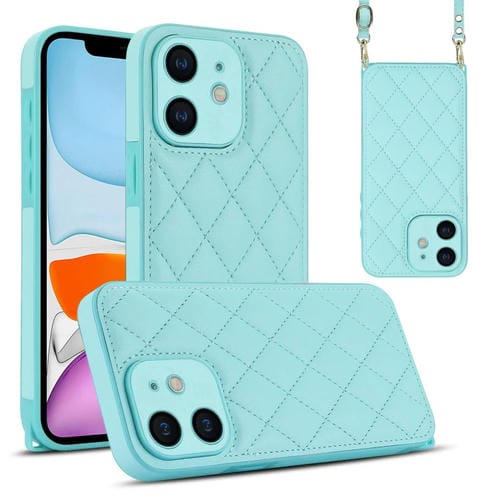Estuche para Teléfono iPhone 11 Textura Rómbica con Cordón Doble (Verde)