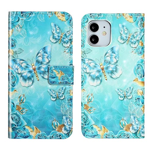 Funda de Teléfono iPhone 11 Cuero Dibujo 3D Relieve al Óleo (Mariposas Azules)