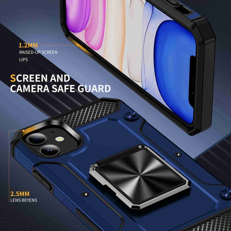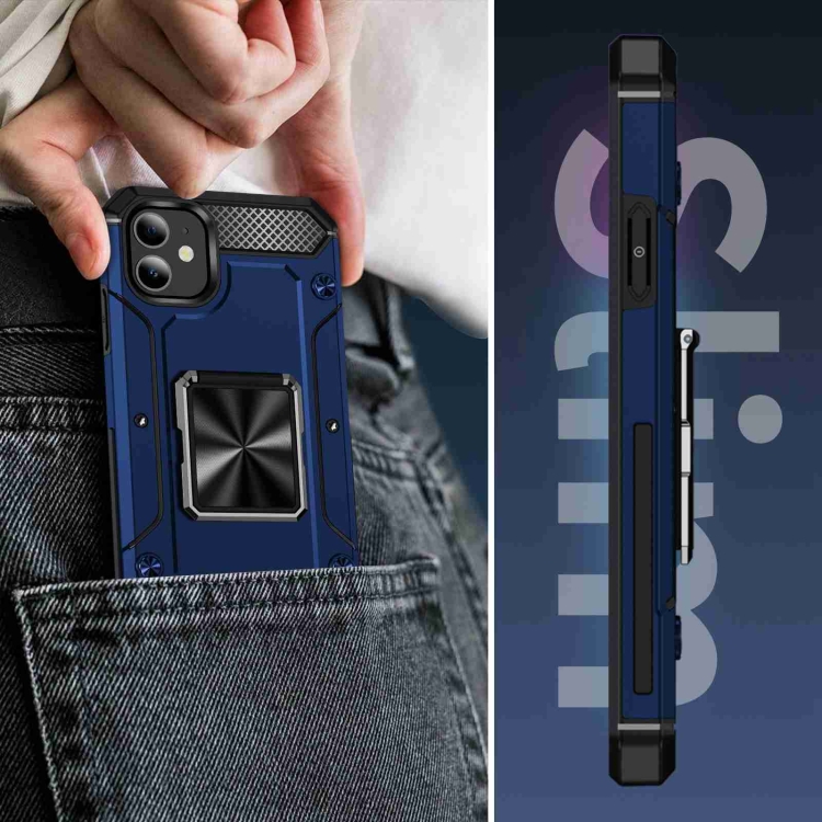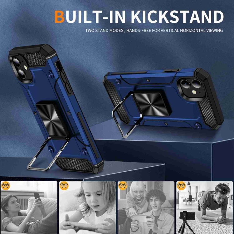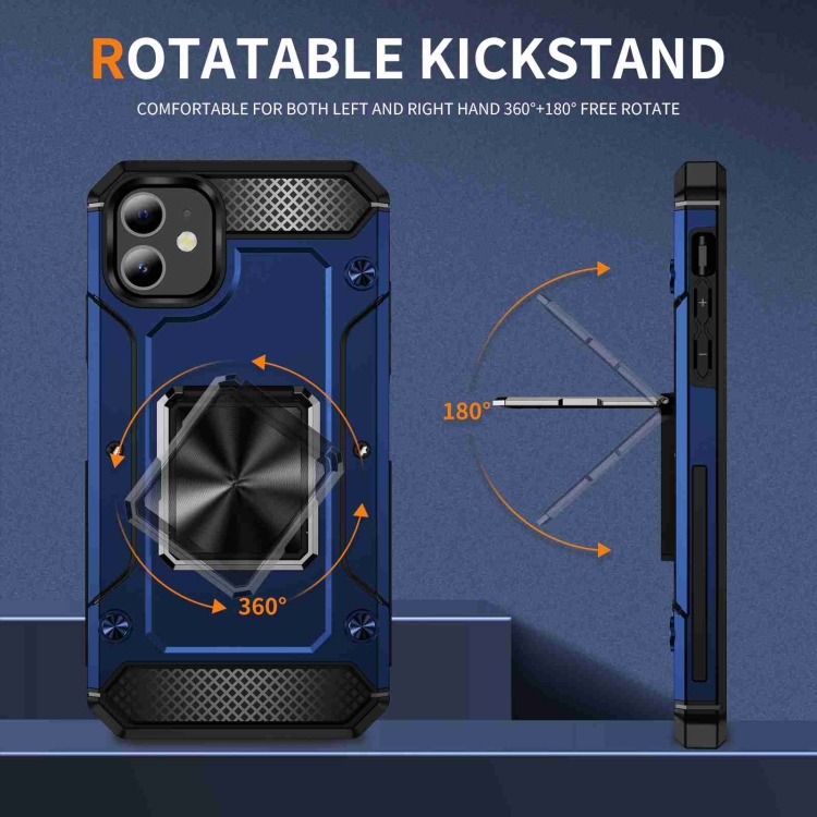 Funda para Teléfono iPhone 11 con Soporte de Metal a Prueba de Golpes (Azul)