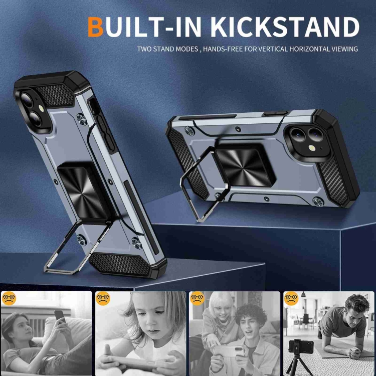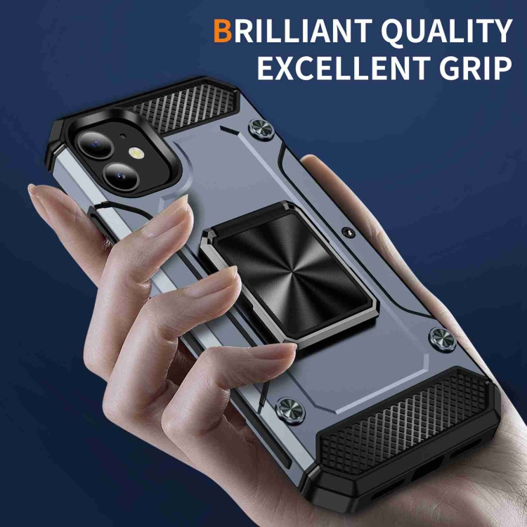 Funda para Teléfono iPhone 11 con Soporte de Metal a Prueba de Golpes (Gris)