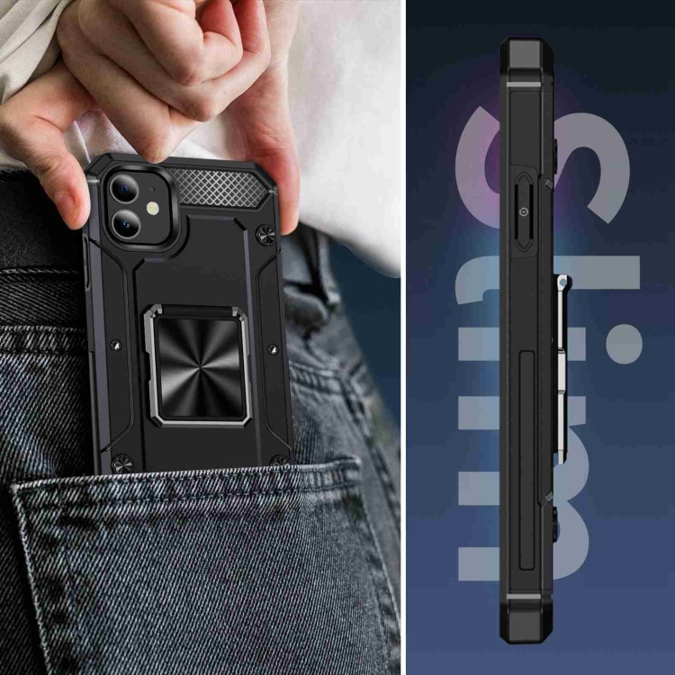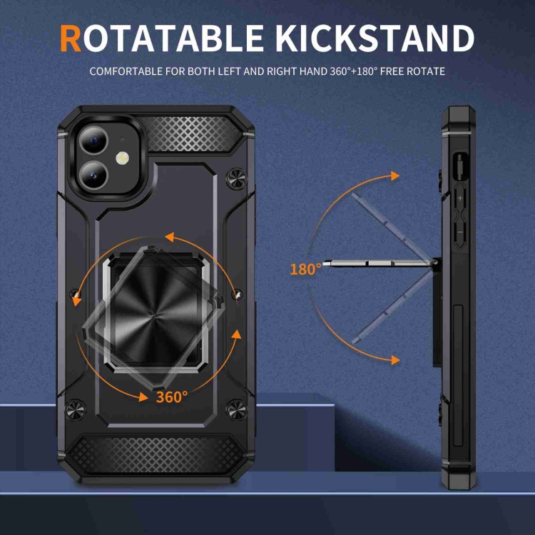 Funda para Teléfono iPhone 11 con Soporte de Metal a Prueba de Golpes (Negro)