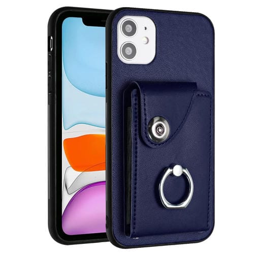 Funda para Teléfono iPhone 11 con Soporte para Anillo y Bolsa para Tarjeta de Órgano (Azul)