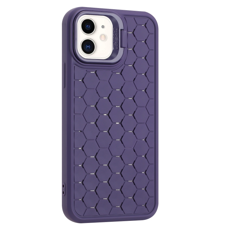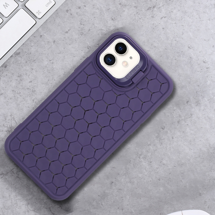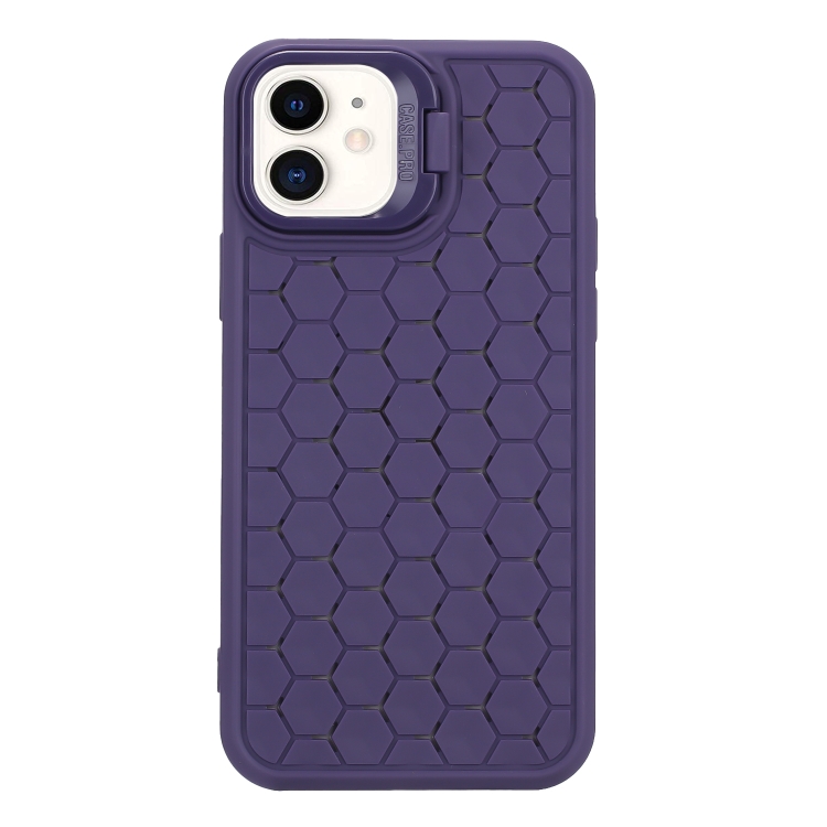 Funda para Teléfono TPU para iPhone 11 con Soporte para Lente Radiante de Panal (Púrpura)