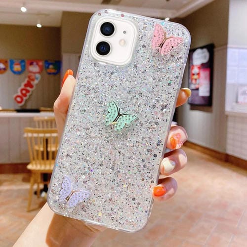 3. Diseño moderno y moderno: mariposas de colores decorativas con diamantes de imitación, protege tu teléfono con estilo.