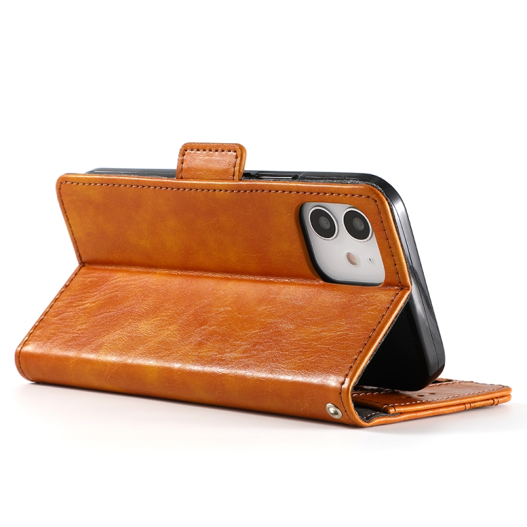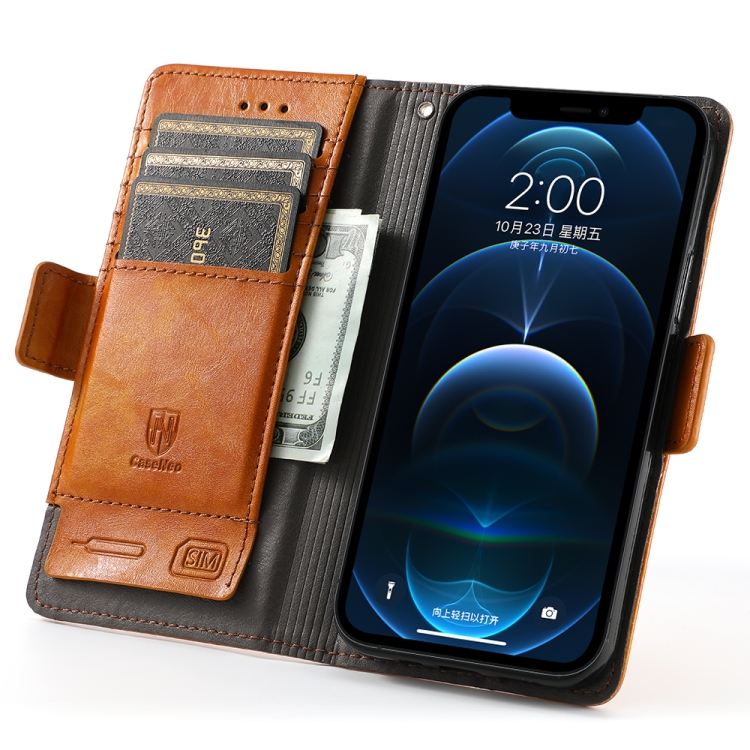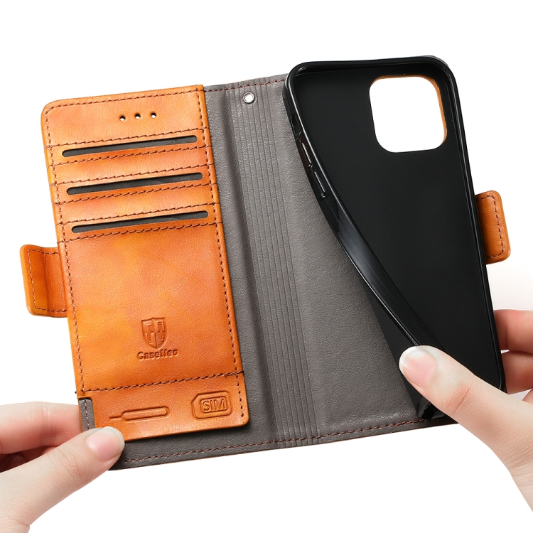Funda para iPhone 11 Pro Caseneo Business Splicing Dual Magnetic Buckle Horizontal Flip PU Cuero con Soporte y Ranuras para Tarjetas y Billetera (Amarillo)