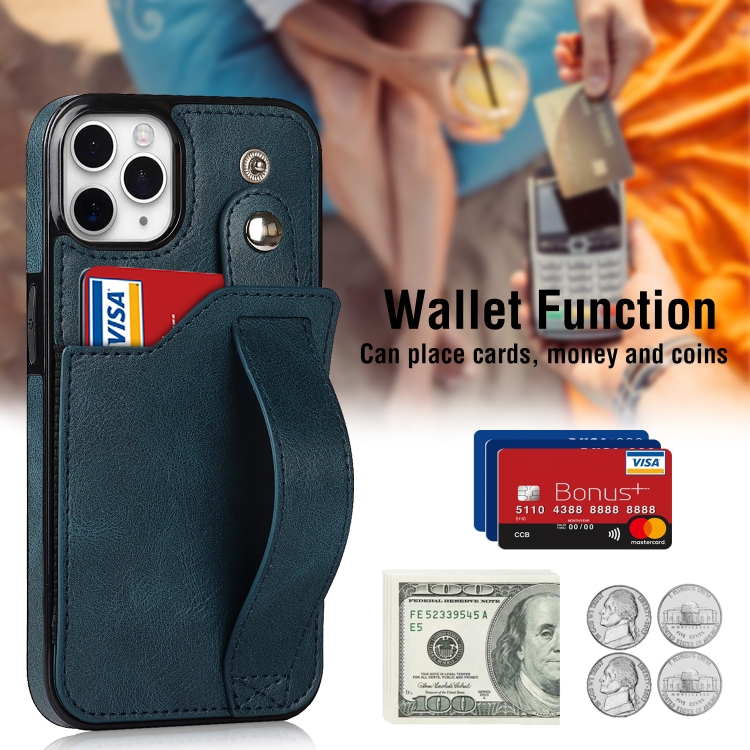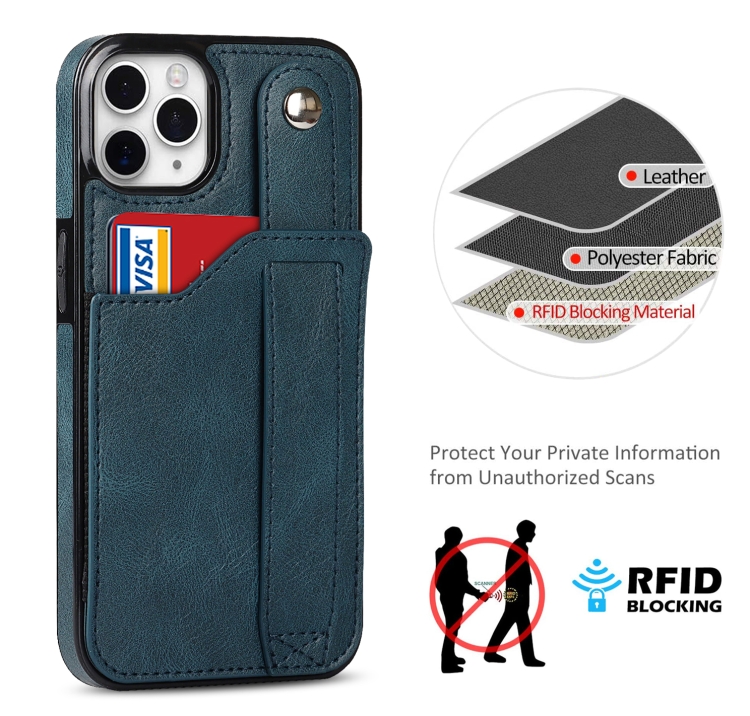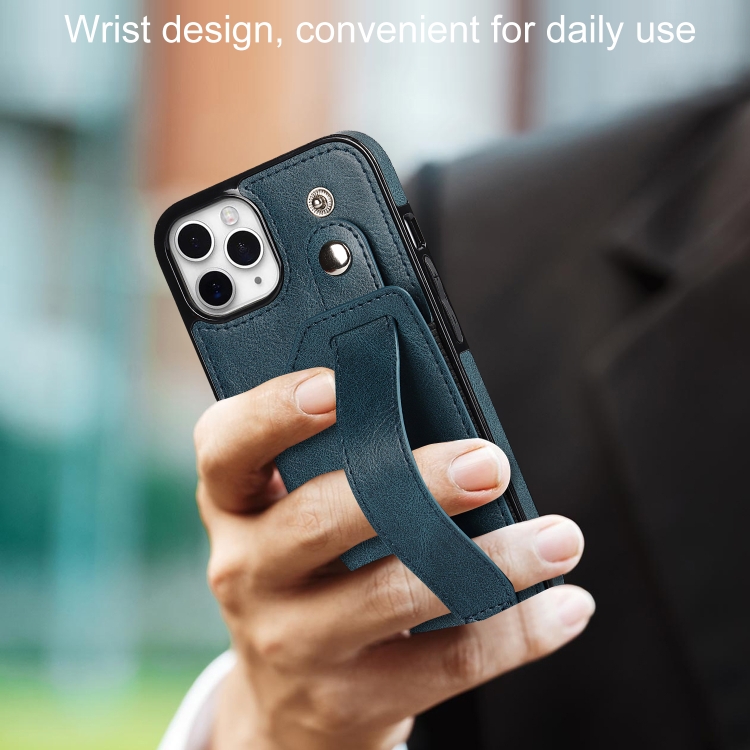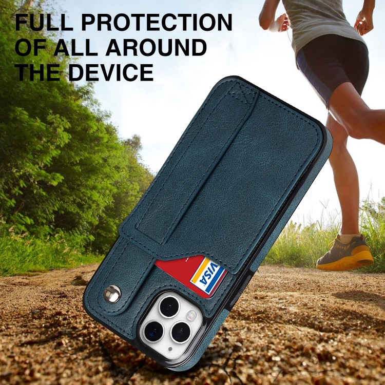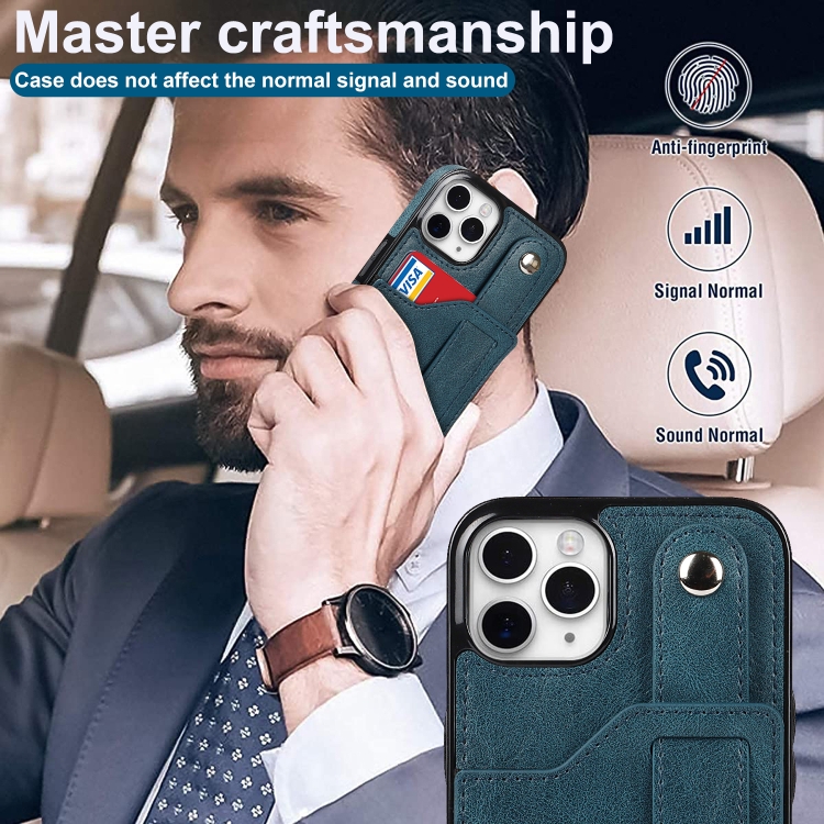 Funda para iPhone 11 Pro Crazy Horse Texture Cuero TPU + PU a Prueba de Golpes con Ranura para Tarjeta y Correa (Azul Zafiro)