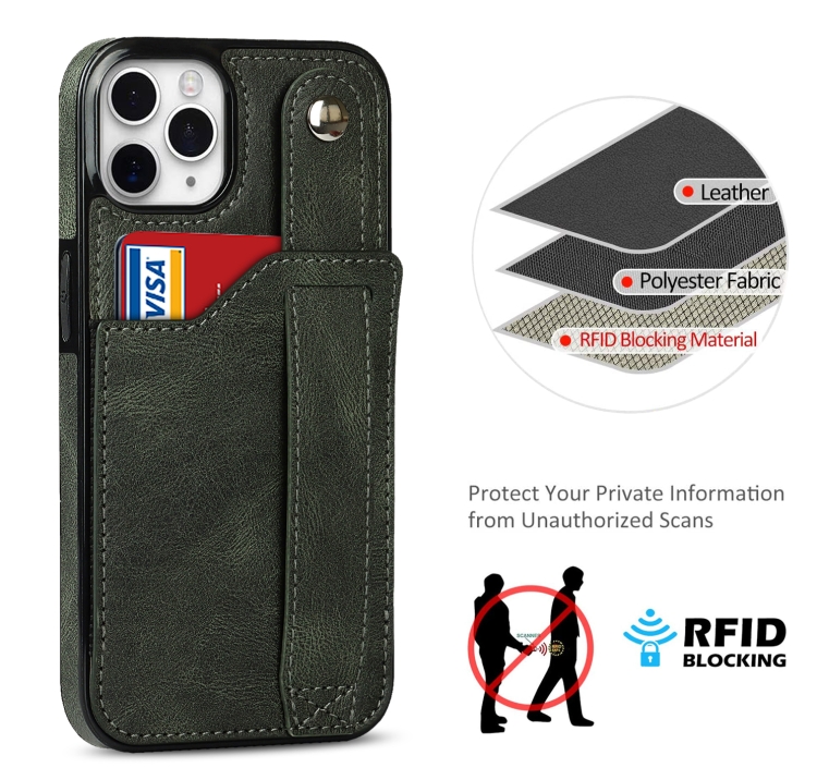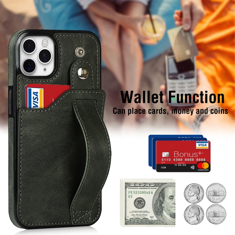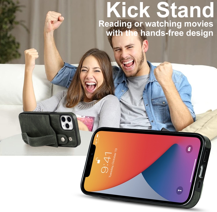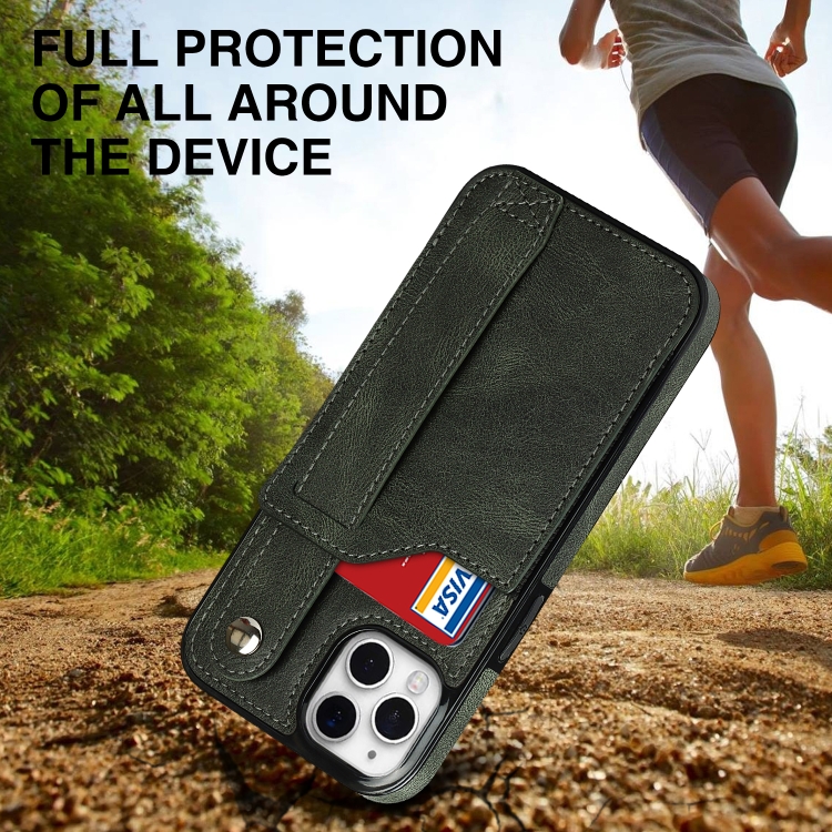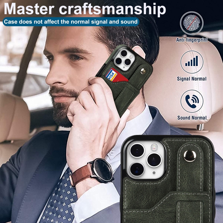 Funda para iPhone 11 Pro Crazy Horse Texture Cuero TPU + PU a Prueba de Golpes con Ranura para Tarjeta y Correa para la Muñeca (Verde Esmeralda)