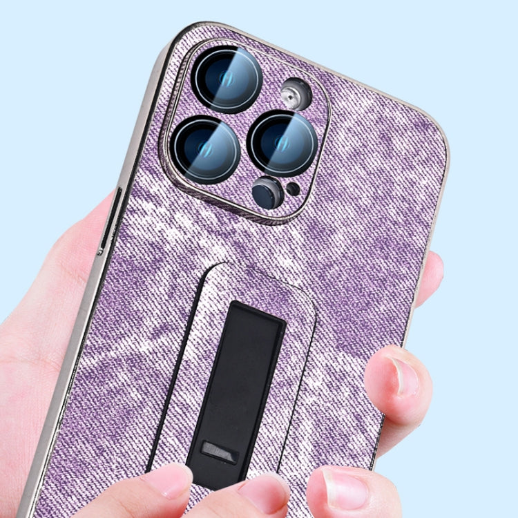 Estuche para teléfono iPhone 11 Pro con enfriamiento soporte push-pull galvanizado patrón de mezclilla (Negro)