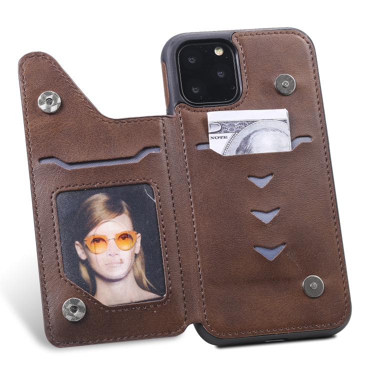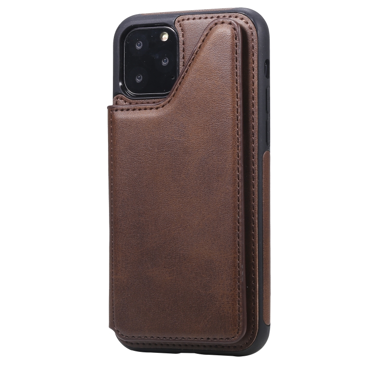 Estuche Protector para iPhone 11 Pro Textura de Pantorrilla a Prueba de Golpes con Soporte y Ranuras para Tarjetas (Café)