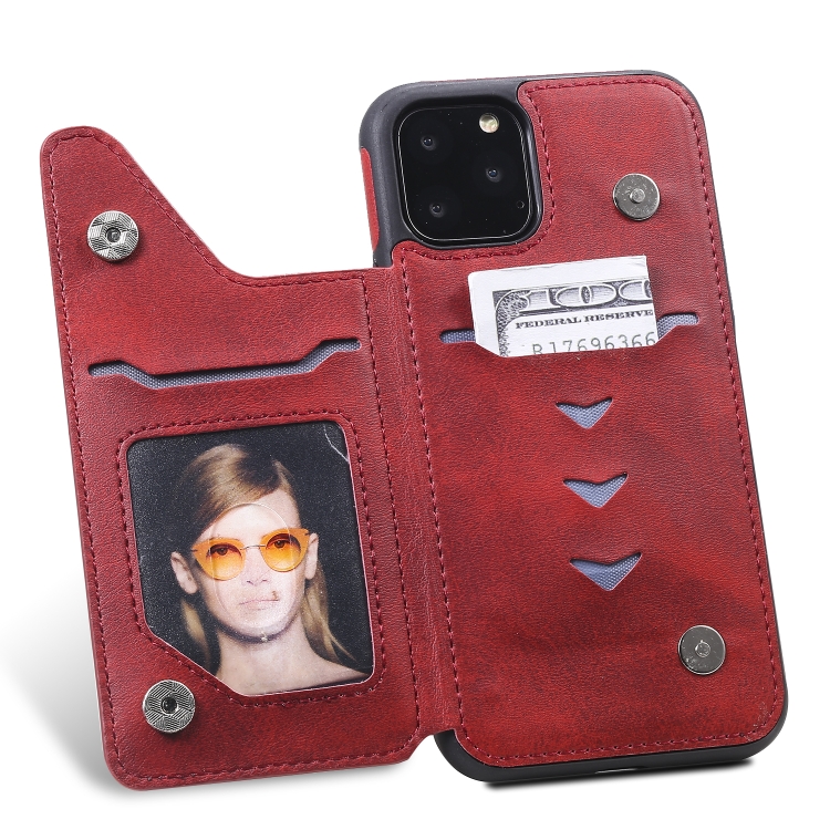 Estuche Protector iPhone 11 Pro Textura Pantorrilla Soporte Ranuras Tarjetas (Rojo)