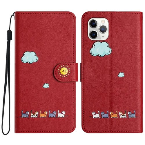 Funda de Cuero para Teléfono iPhone 11 Pro con Gatos de Dibujos Animados (Rojo)