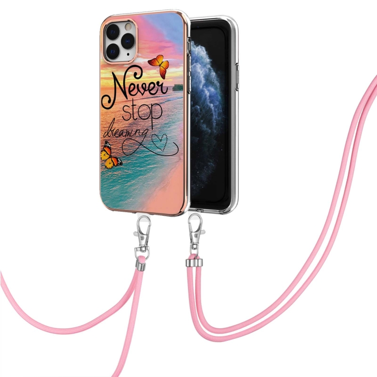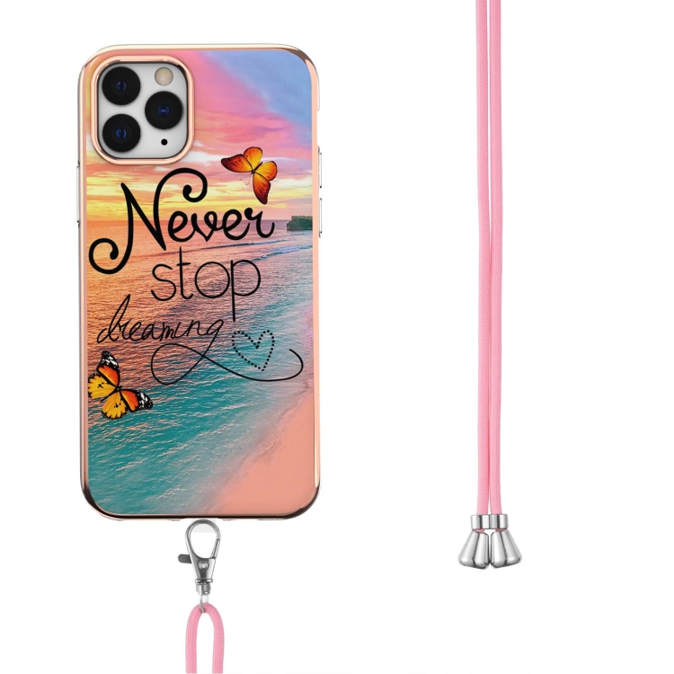 Estuche TPU para iPhone 11 Pro Galvanoplastia Patrón Imd a Prueba de Golpes con Cordón (Dream Chasing Butterfly)