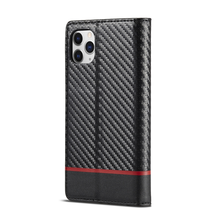 Funda para iPhone 11 Pro Lc.Imeeke Cuero con Tapa Horizontal Fibra de Carbono PU TPU Soporte Ranura Tarjeta Billetera (Negro)
