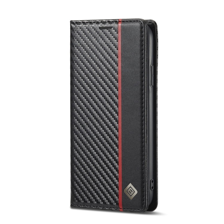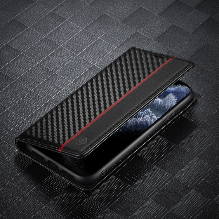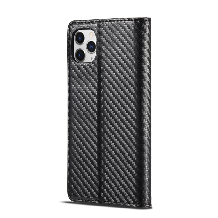 Funda para iPhone 11 Pro Lc.Imeeke Cuero con Tapa Horizontal Fibra de Carbono PU + TPU Soporte Ranura Tarjeta Billetera (Negro)