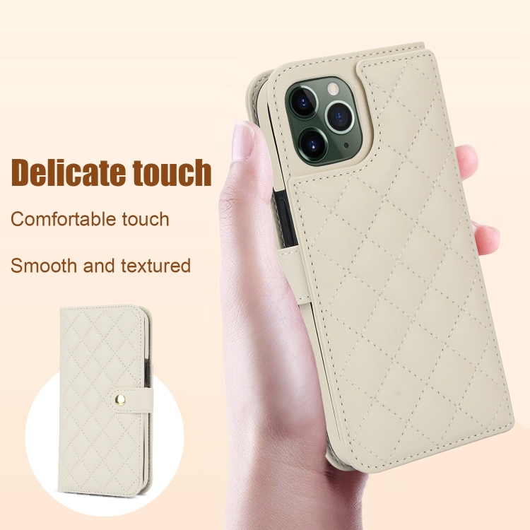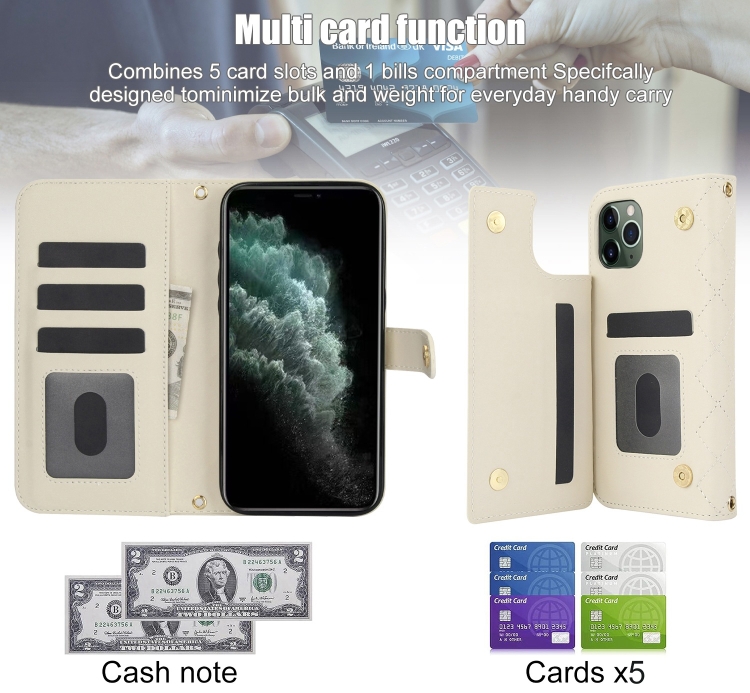 Estuche para Teléfono iPhone 11 Pro Max Crossbody Cuero Rómbico Multifunción (Blanco)