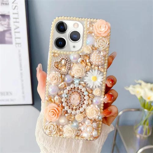 Estuche para Teléfono iPhone 11 Pro Max con Incrustaciones de Diamantes y Rosas PC (Amarillo)