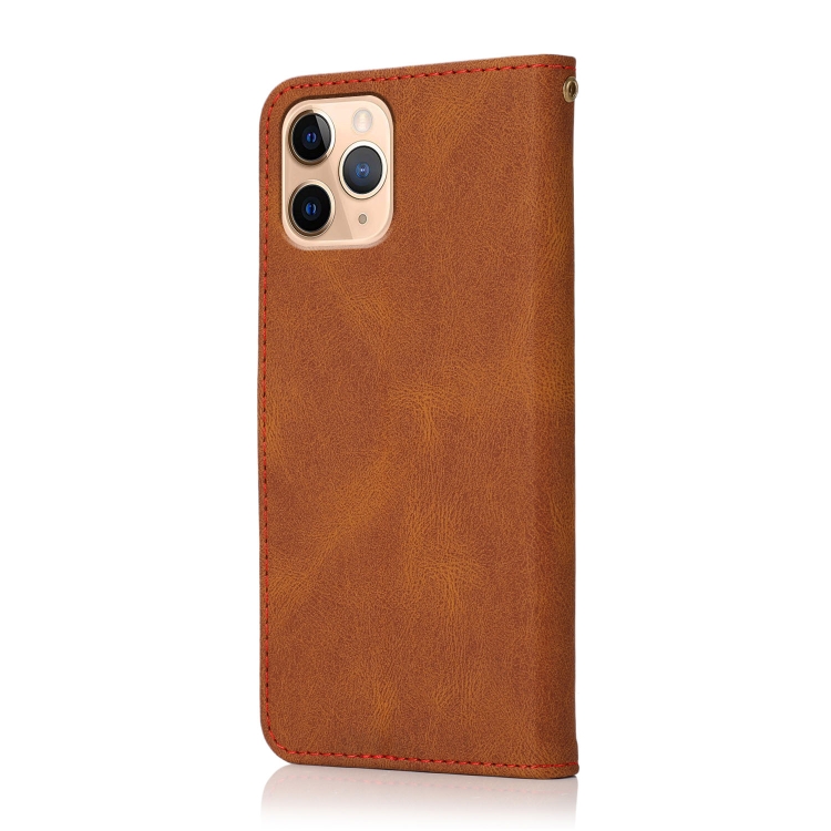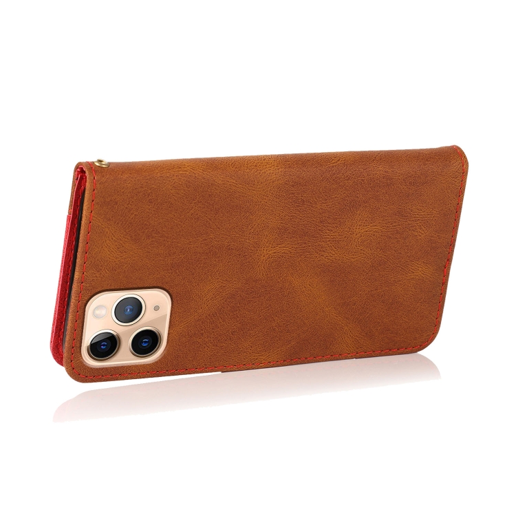 Estuche para teléfono iPhone 11 Pro Max Cuero con Costuras de Dos Colores (Marrón Rojo)
