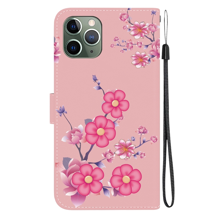 Funda para Teléfono iPhone 11 Pro Max Cuero Dibujo Coloreado Textura de Cristal (Flores de Cerezo)
