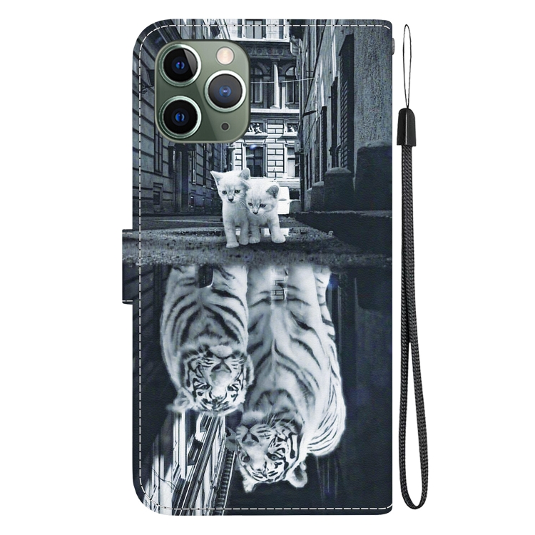 Funda para Teléfono iPhone 11 Pro Max Cuero Dibujo Coloreado Textura Cristal (Reflejo de Tigre Gato)