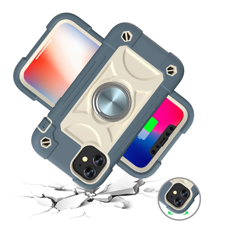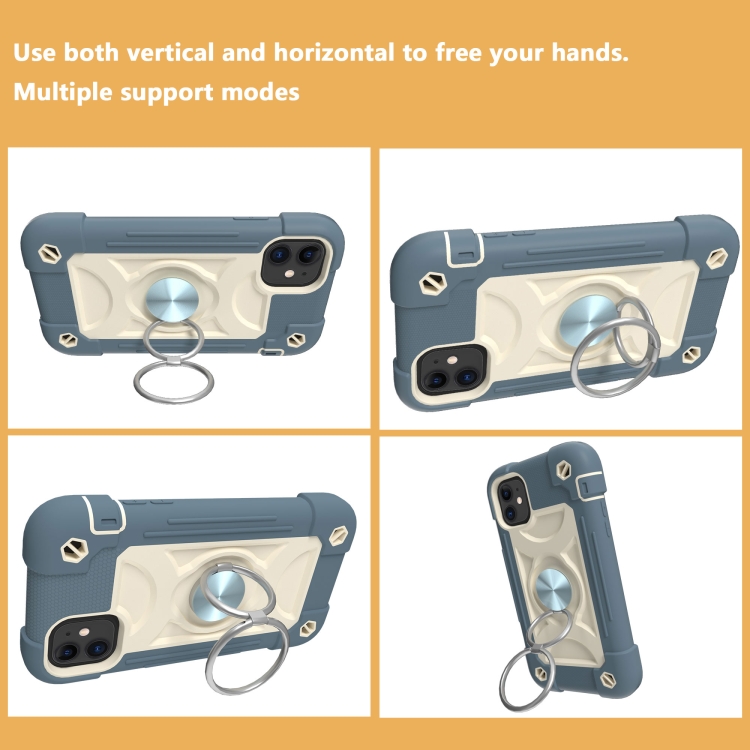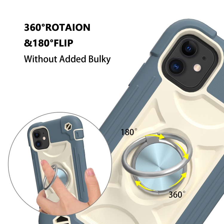 Funda Protectora para iPhone 11 Pro Max Silicona y PC con Soporte Doble Anillo (Azul)