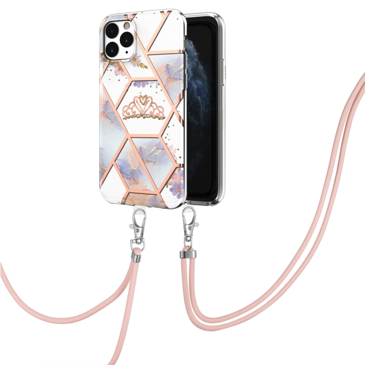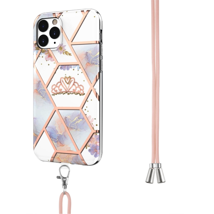 Estuche para iPhone 11 Pro Max TPU Galvanoplastia Empalme Mármol Patrón de Flores con Cordón (Corona Imperial)