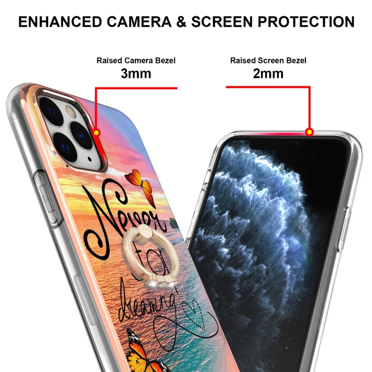 Estuche TPU para iPhone 11 Pro Max Galvanoplastia Patrón Imd a Prueba de Golpes con Soporte para Anillo (Dream Chasing Butterfly)