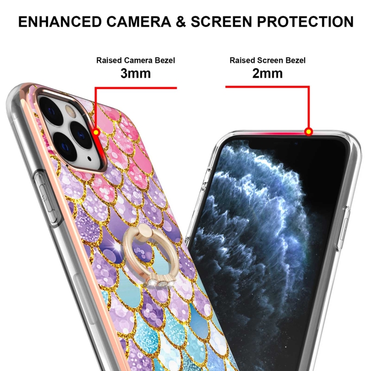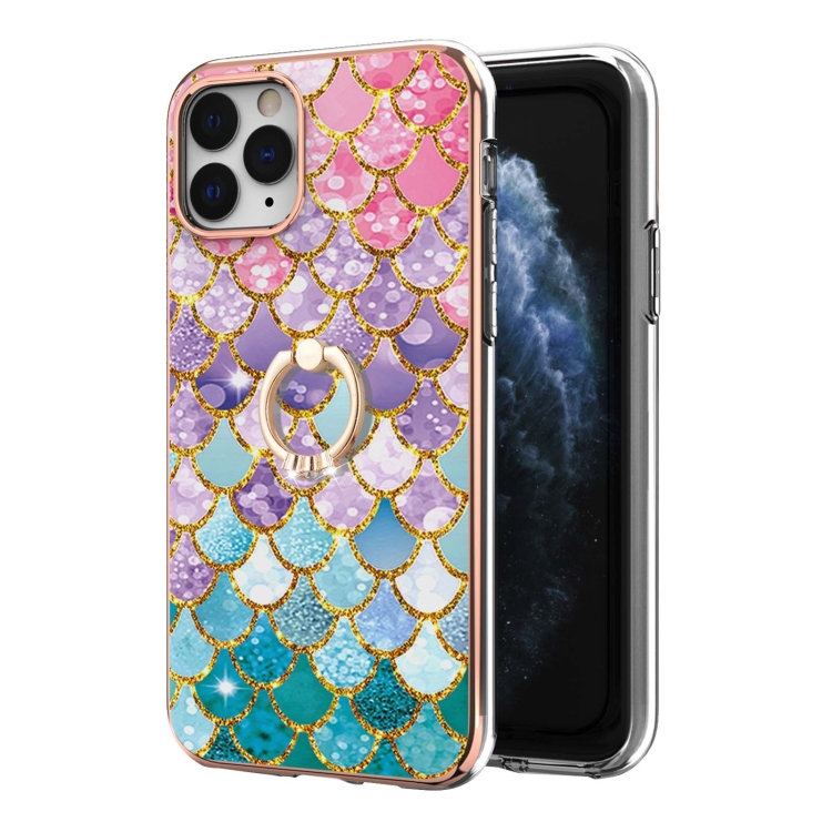 Estuche TPU para iPhone 11 Pro Max Galvanoplastia Patrón Imd a Prueba de Golpes con Soporte para Anillo (Escamas de Colores)