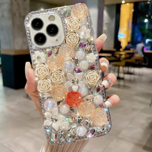Estuche para teléfono iPhone 11 Pro Max Pearl Diamond para PC con juego de manos (Albaricoque)