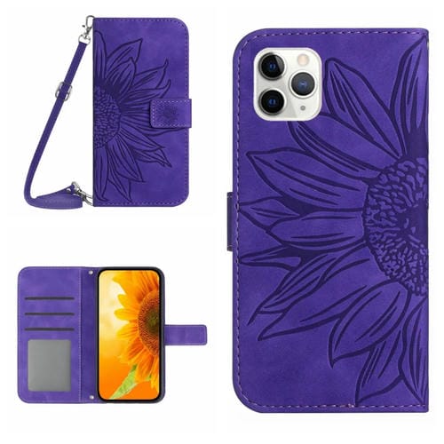 Funda Flip de Cuero para iPhone 11 Pro Max Skin Feel Sun Flower con Cordón (Morado Oscuro)