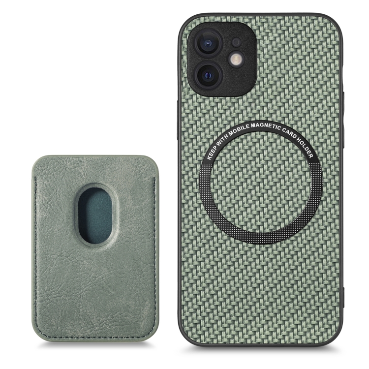 Funda para Teléfono iPhone 11 Pro Max Cuero Fibra de Carbono Magsafe Magnética (Verde)