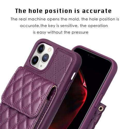 Funda para Teléfono iPhone 11 Pro Max Vertical Wallet Rhombic Cuero (Púrpura Oscuro)
