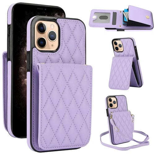 Funda para Teléfono iPhone 11 Pro Max Ym015 Rfid con Bolsa para Tarjeta Rómbica Cruzada (Púrpura Claro)